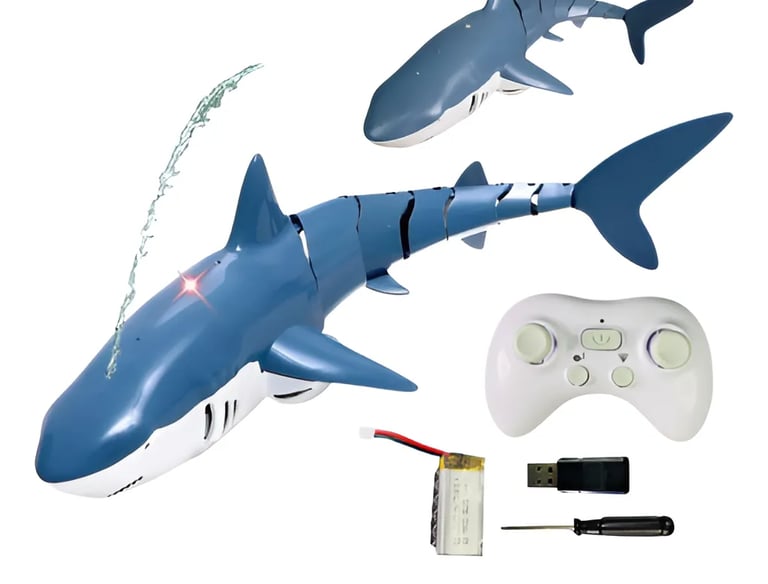 Tubarão Baleia Controle Recarregável Brinquedo Shark Aquatic Cor Azul-celeste
